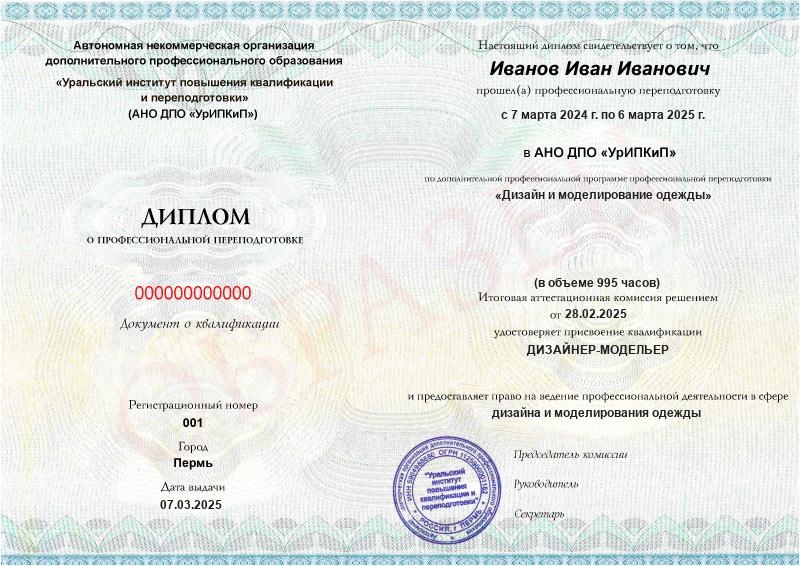 Да, дипломы и удостоверения оформляются в соответствии с действующим законодательством РФ. Документы печатаются на специальных бланках, заверяются печатью АНО ДПО «УрИПКиП».
