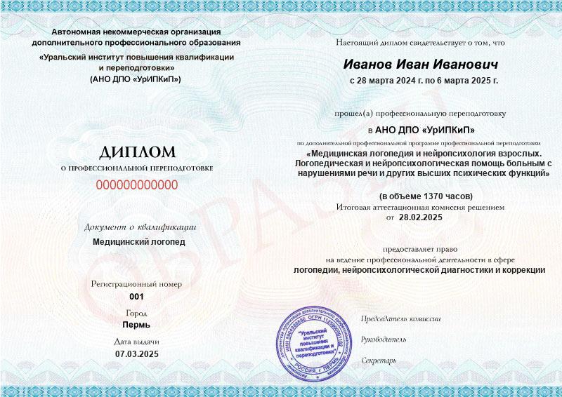 Курс обучения Медицинская логопедия и нейропсихология взрослых. Логопедическая и нейропсихологическая помощь больным с нарушениями речи и других высших психических функций (1370ч)