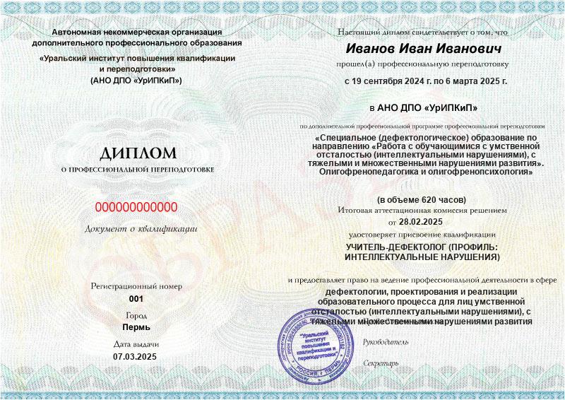 - Образец диплома о профессиональной переподготовке.