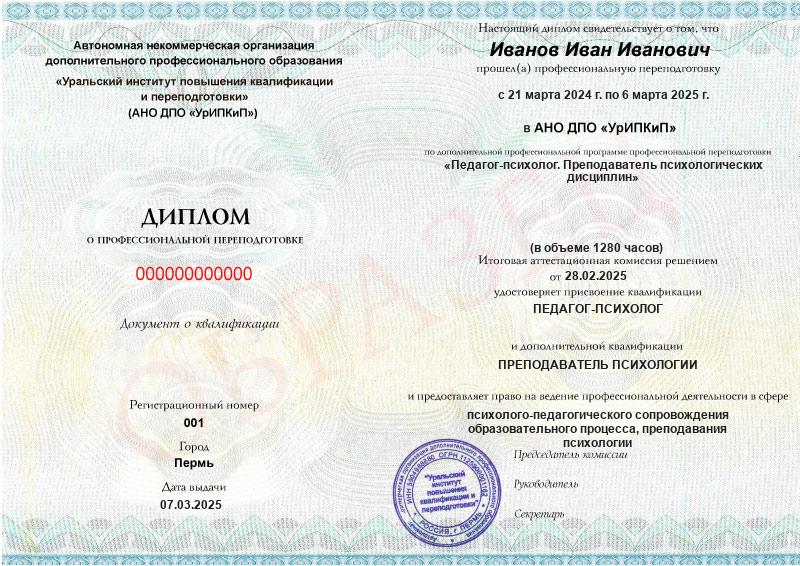 Курс обучения Педагог-психолог. Преподаватель психологических дисциплин (1280ч)