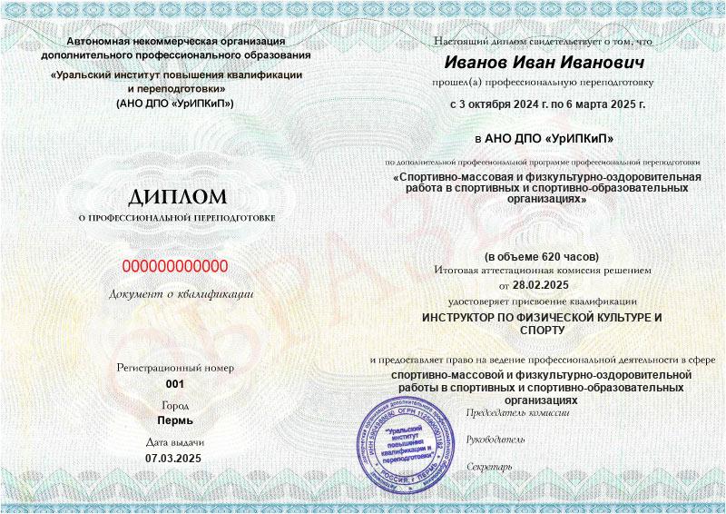 - Образец диплома о профессиональной переподготовке.