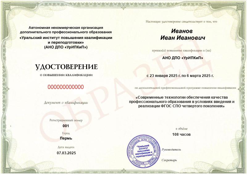• Повышали квалификацию в АНО ДПО «УрИПКиП» – вам будет выдано удостоверение.