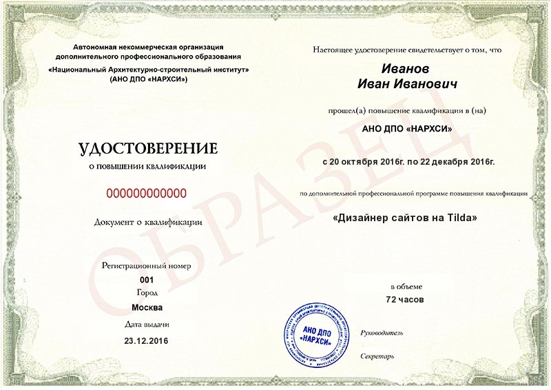 Удостоверение о повышении квалификации Удостоверение действует на территории всей России и признается государственными и частными организациями