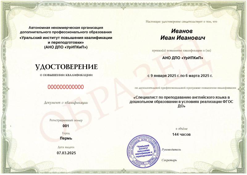 - Повышали квалификацию в АНО ДПО «УрИПКиП» – вам будет выдано удостоверение.