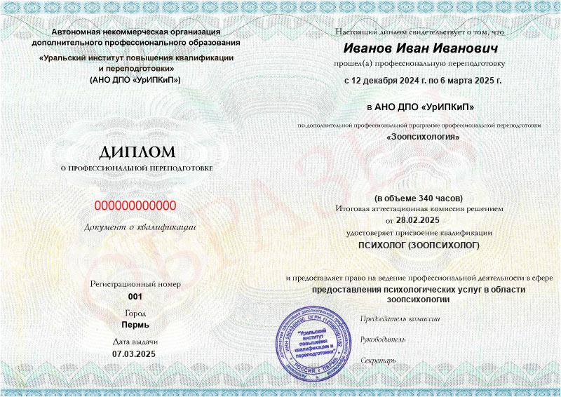 - Образец диплома о профессиональной переподготовке.
